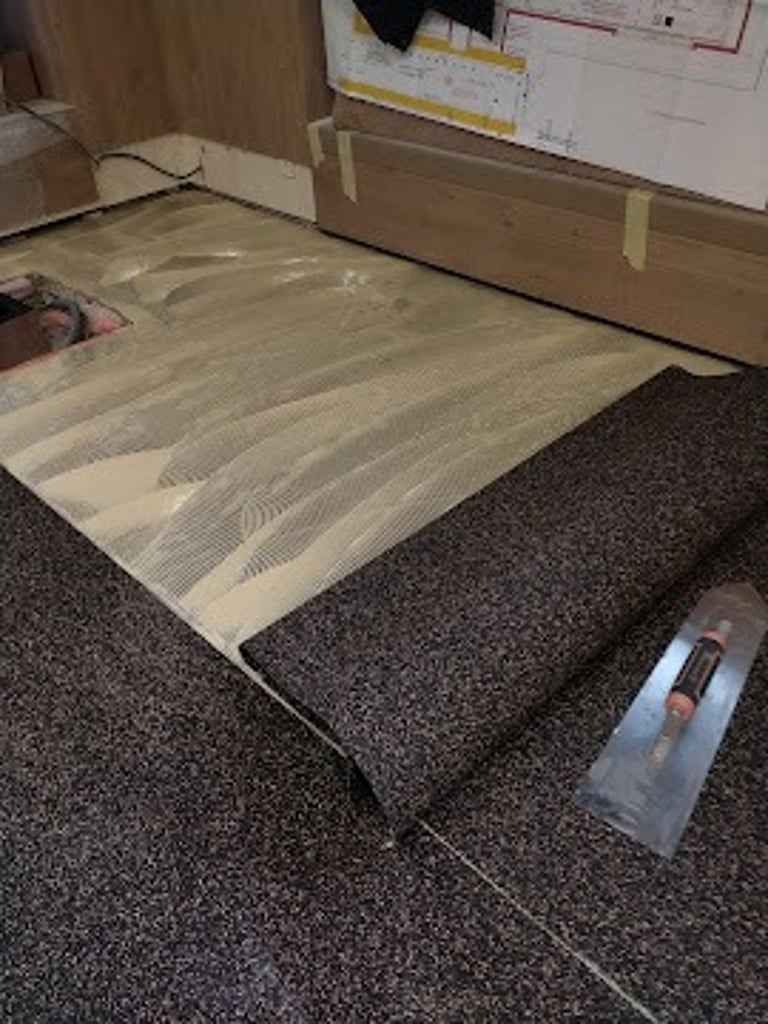 Si nécessaire, un ragréage est effectué afin d’obtenir une surface plane, saine et régulière, indispensable à une bonne adhérence.